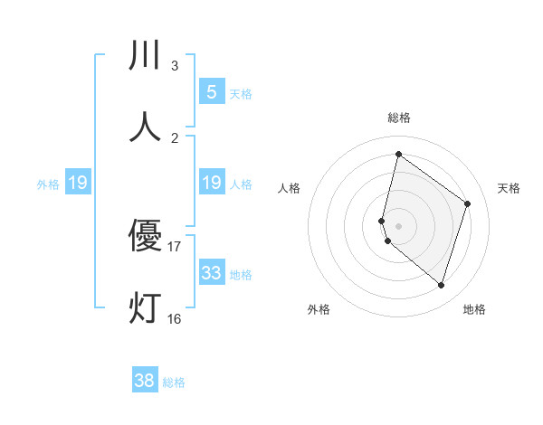 川人 優灯さんの総格は38画の4点!