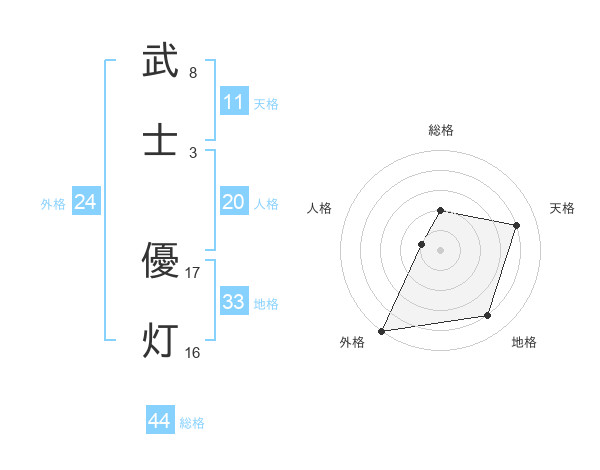 武士 優灯さんの総格は44画の2点!