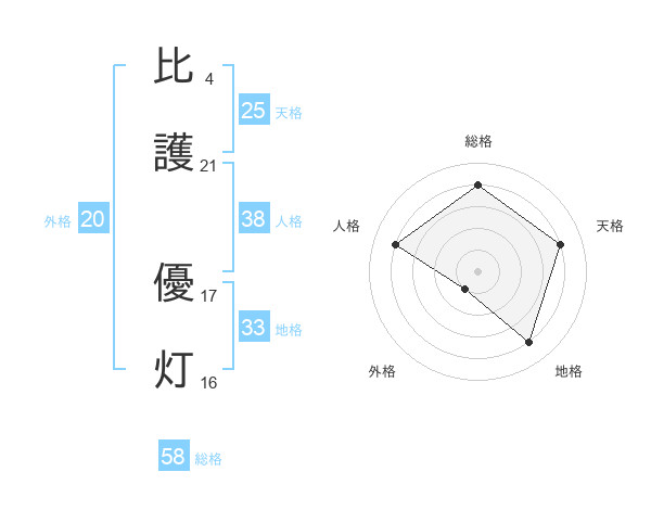 比護 優灯さんの総格は58画の4点!