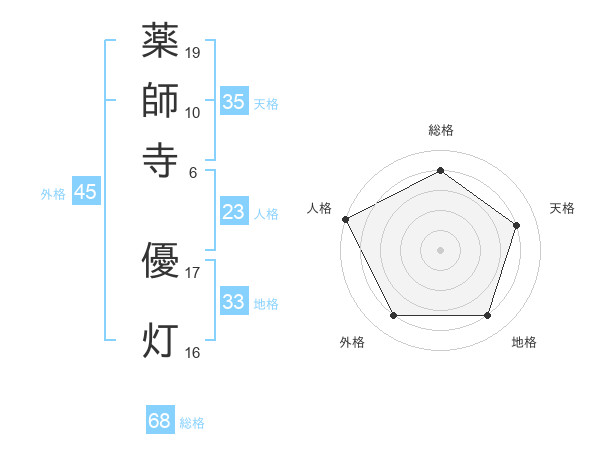 薬師寺 優灯さんの総格は68画の4点!