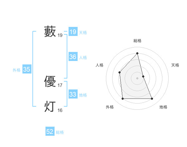 藪 優灯さんの総格は52画の4点!