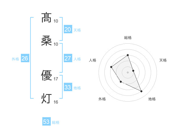 髙桑 優灯さんを姓名の画数から五運を鑑定
