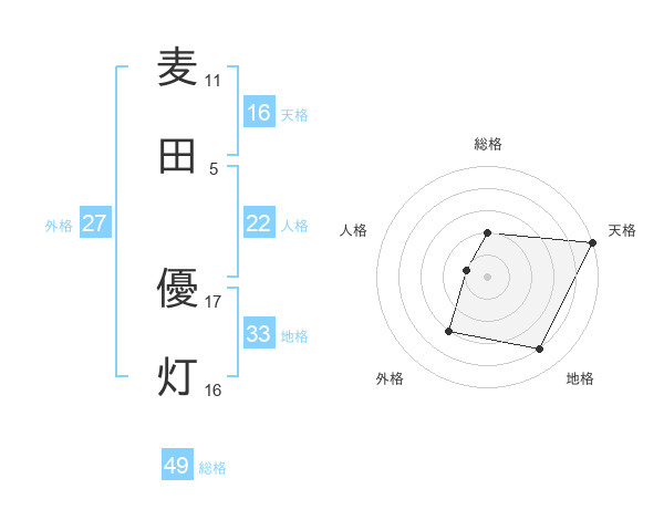 麦田 優灯さんを姓名の画数から五運を鑑定