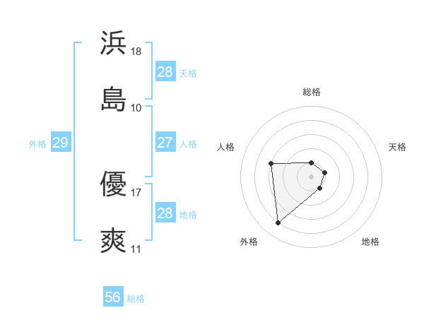 浜島 優爽さんを姓名の画数から五運を鑑定