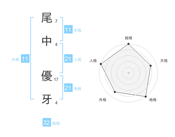 尾中 優牙さんを姓名の画数から五運を鑑定