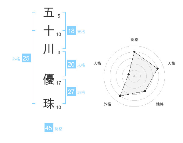五十川 優珠さんの天格は18画の4点!