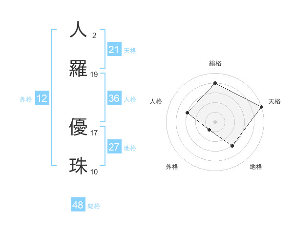 人羅 優珠さんを姓名の画数から五運を鑑定
