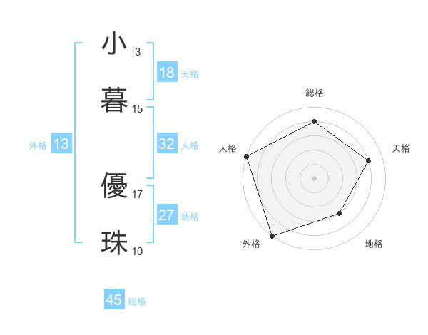 小暮 優珠さんの総格は45画の4点!