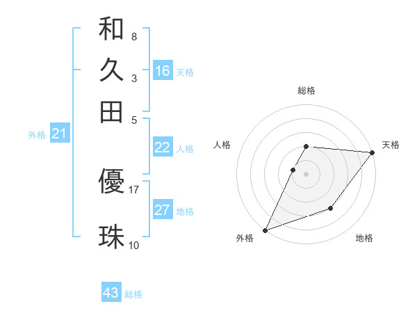 和久田 優珠さんを姓名の画数から五運を鑑定