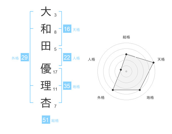 大和田 優理杏さんを姓名の画数から五運を鑑定