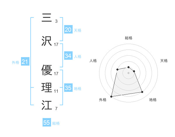 三沢 優理江さんの天格は20画の1点!