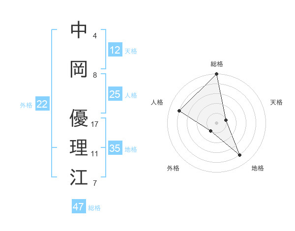 中岡 優理江さんを姓名の画数から五運を鑑定