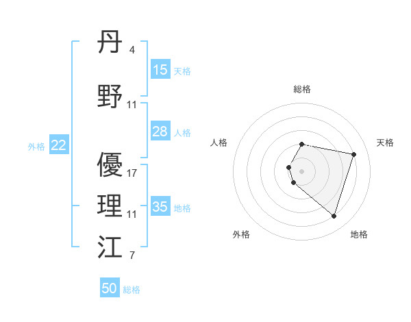 丹野 優理江さんを姓名の画数から五運を鑑定