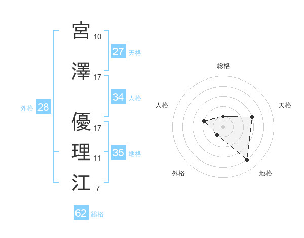 宮澤 優理江さんを姓名の画数から五運を鑑定