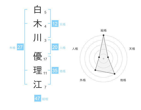 白木川 優理江さんを姓名の画数から五運を鑑定