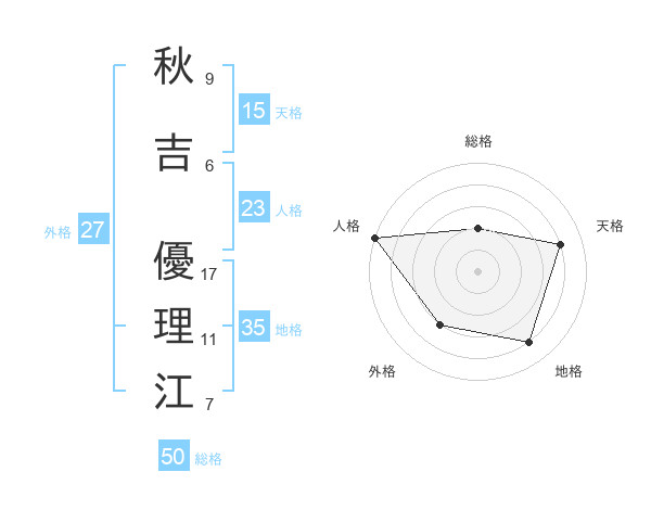 秋吉 優理江さんを姓名の画数から五運を鑑定