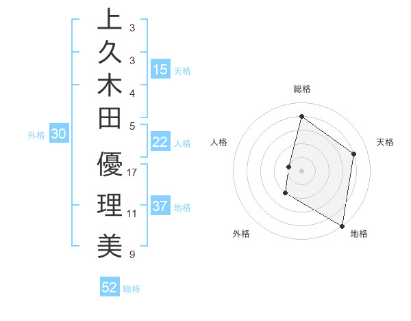 上久木田 優理美さんを姓名の画数から五運を鑑定