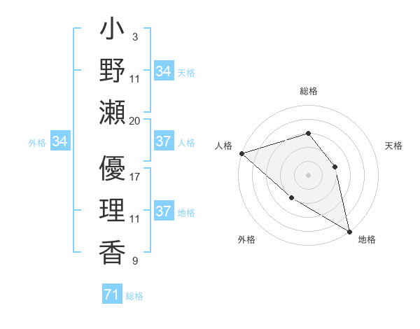 小野瀬 優理香さんの総格は71画の3点!
