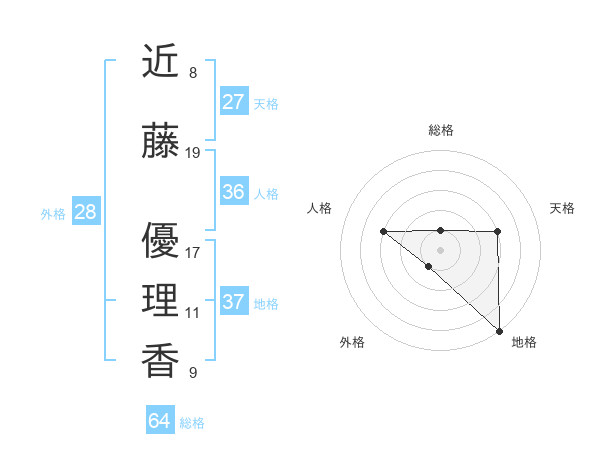 近藤 優理香さんの総格は64画の1点!