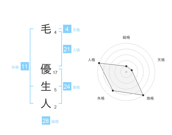 毛 優生人さんの地格は24画の5点