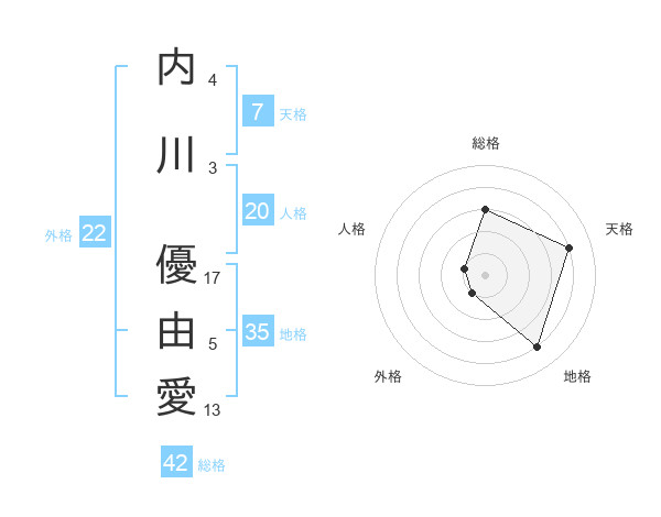 内川 優由愛さんを姓名の画数から五運を鑑定