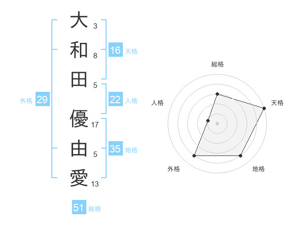 大和田 優由愛さんを姓名の画数から五運を鑑定