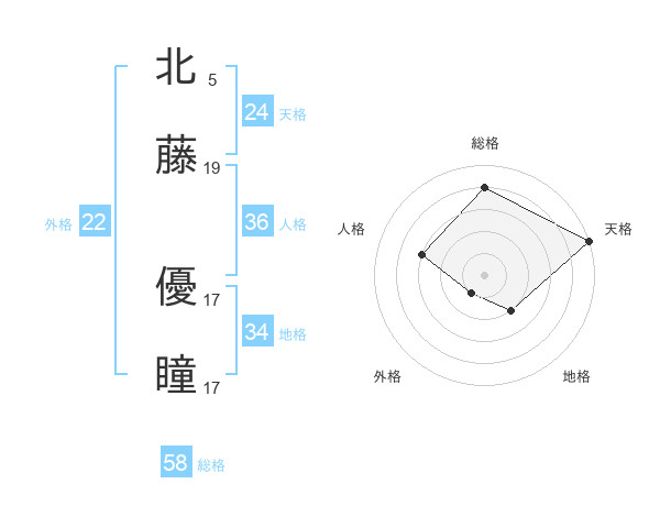 北藤 優瞳さんを姓名の画数から五運を鑑定