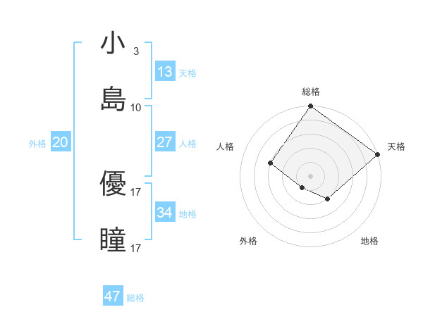 小島 優瞳さんの総格は47画の5点!
