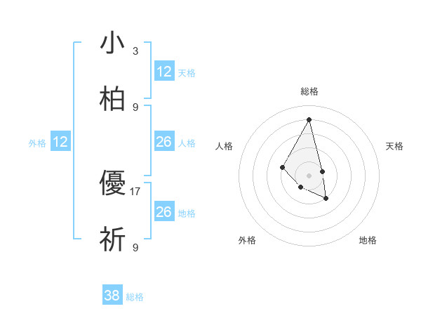 小柏 優祈さんを姓名の画数から五運を鑑定