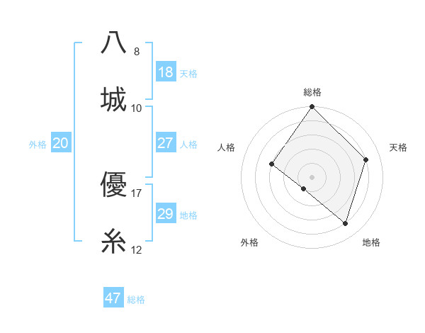 八城 優糸さんの総格は47画の5点!