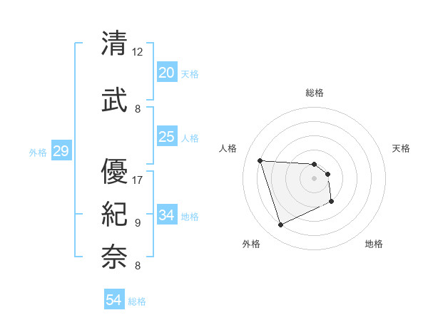 清武 優紀奈さんの天格は20画の1点!