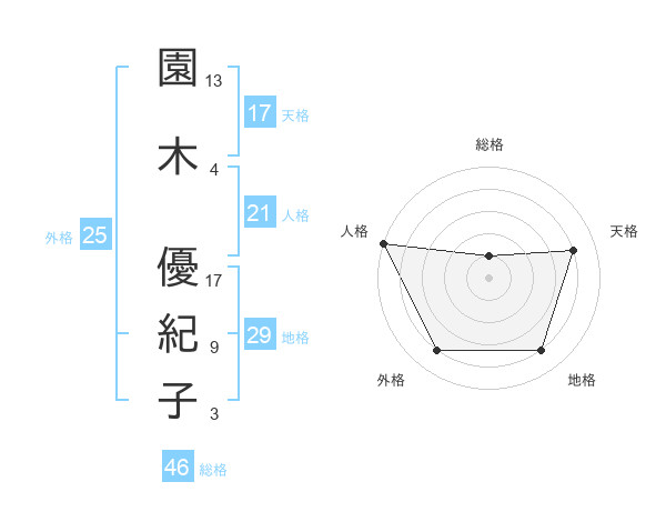園木 優紀子さんを姓名の画数から五運を鑑定