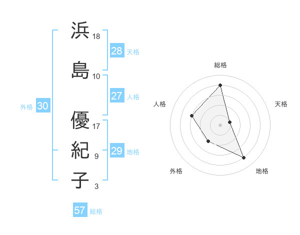 浜島 優紀子さんの総格は57画の4点!