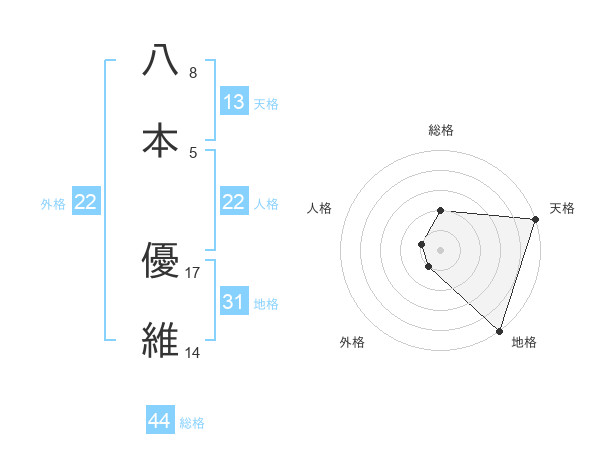 八本 優維さんの天格は13画の5点!
