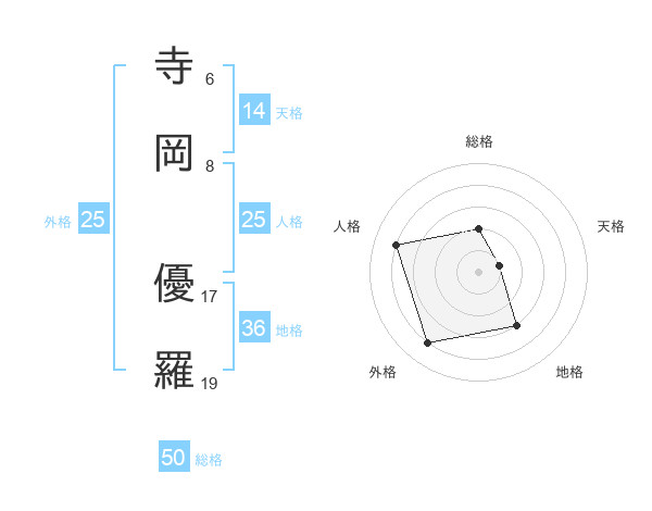 寺岡 優羅さんの外格は25画の4点!