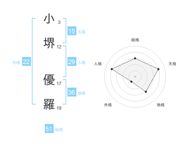 小堺 優羅さんの総格は51画の3点!