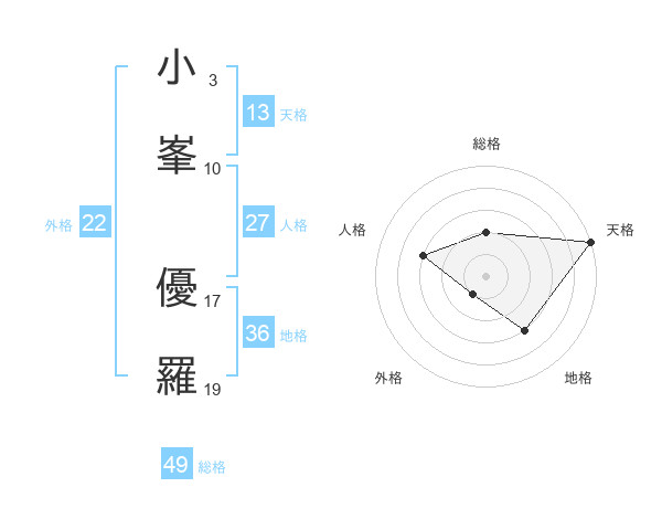 小峯 優羅さんの天格は13画の5点!