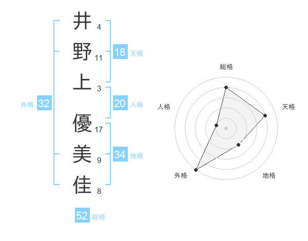 井野上 優美佳さんの総格は52画の4点!