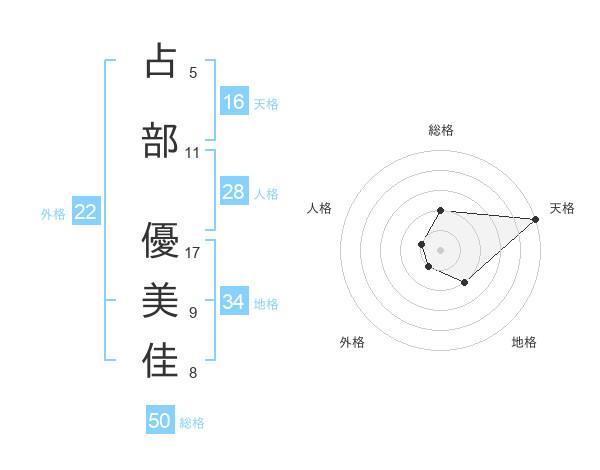 占部 優美佳さんの天格は16画の5点!
