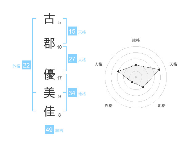 古郡 優美佳さんを姓名の画数から五運を鑑定