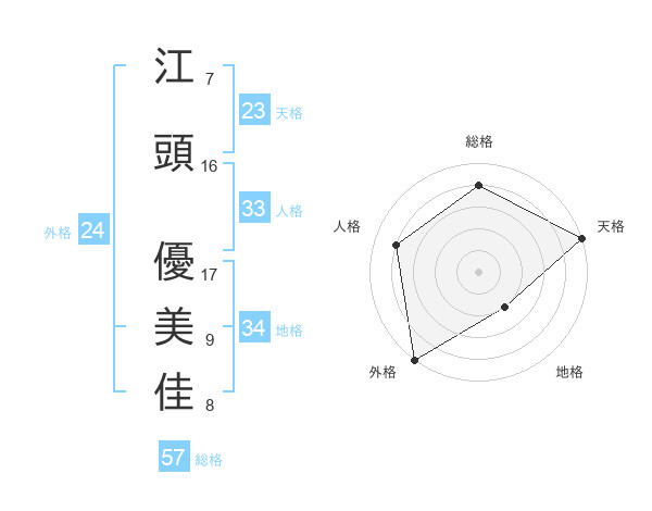 江頭 優美佳さんを姓名の画数から五運を鑑定