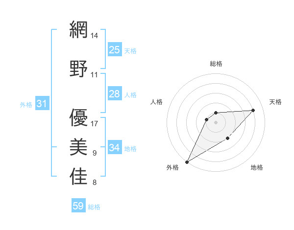 網野 優美佳さんを姓名の画数から五運を鑑定