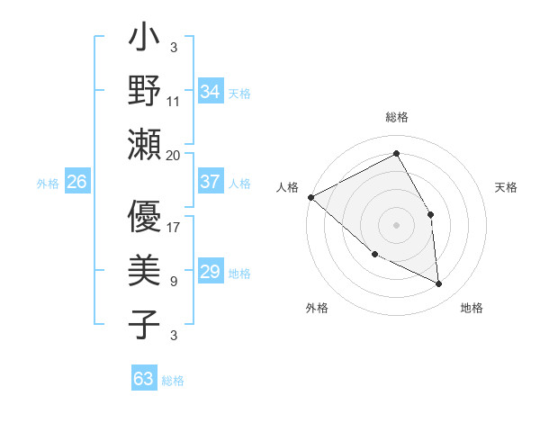 小野瀬 優美子さんを姓名の画数から五運を鑑定
