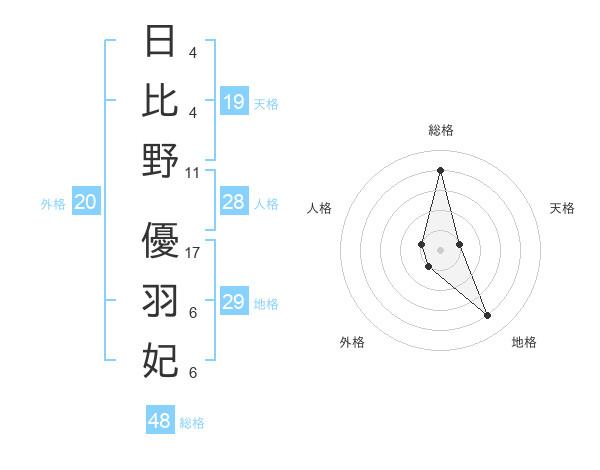 日比野 優羽妃さんの総格は48画の4点!