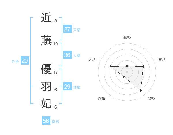 近藤 優羽妃さんを姓名の画数から五運を鑑定