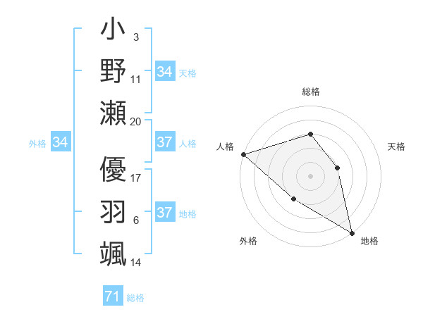 小野瀬 優羽颯さんを姓名の画数から五運を鑑定