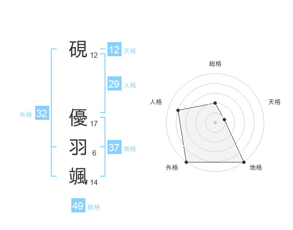 硯 優羽颯さんの総格は49画の2点!