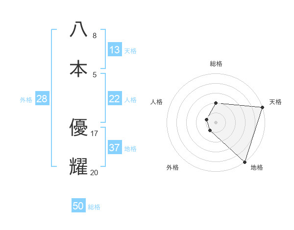 八本 優耀さんの総格は50画の2点!