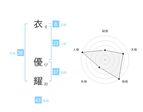 衣 優耀さんの総格は43画の2点!