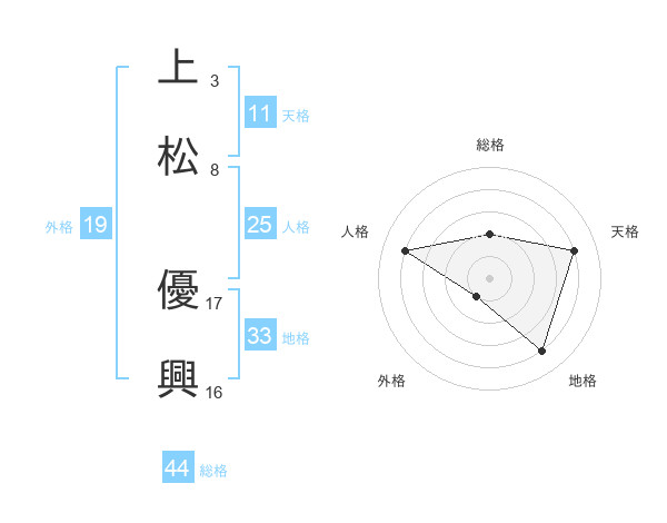 上松 優興さんの天格は11画の4点!